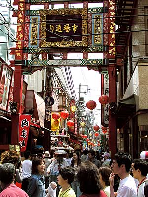 これは横浜中華街の ほぼ真ん中あたりの写真です。 牌楼(鳥居のような門のこと)にも 書いてあるけど、「市場通り」の入り口。 中華街大通りとの交差点です。 人!ひとッ!ヒトッ! やっぱり、 ゴールデンウィークの横浜中華街は、 スゴイッ! __(@_@;)__ いつもなら、 1〜2分で通過できるはずの「市場通り」。 この日は、10分もかかっちゃいました。)'ε'( 恐るべし....ゴールデンウィーク.... ....でね、 さらに恐るべしは、 70〜80cmぐらいの高さの二段の棚を 頭の上にくくりつけ(?) そこにお人形を飾った人が出没! しかも、こんなに混みあっている中なのに、 自転車に乗ってですよぉっ! でも、ハプニング!と感じてたのは、 街の人間だけみたい.... 買い物や食べにきた方たちは 記念写真を撮ったりしていて、 何かアトラクションの一つのようでした。 本当の恐るべしは、 そんな方たちの"したたかさ"かも.... |