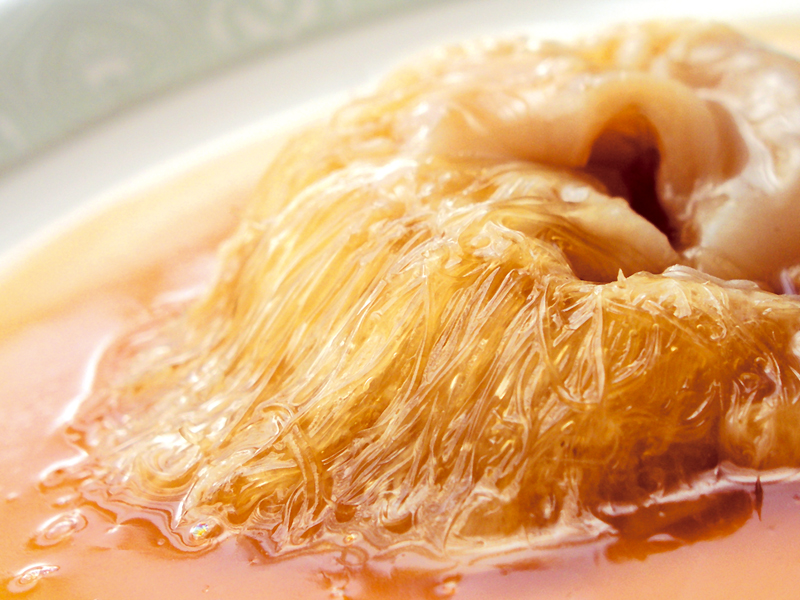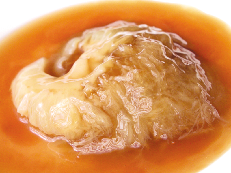 気仙沼産特厚(アオザメ)ふかひれの姿煮頂湯青蓮明翅 \9,720(10,692)(150g) 一本一本の金糸(繊維)がとても太く、 しっかりとした歯応えがあり、 非常に多く含まれたゼラチン質から、 独特のねっとりとした口当たりが特徴です。