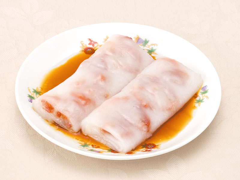 海老入り蒸しクレープ 鮮蝦仁腸粉 \540(594)(2本) 日本では珍しい広東式のクレープです。 ぷるぷる、もちもちした他には無い食感が くせになること間違いなし。 粉もの好きな方はぜひお試しください。