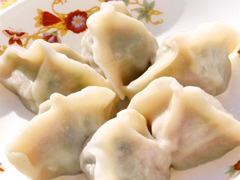 豚肉に海老を混ぜた餡が特徴の茹で餃子。