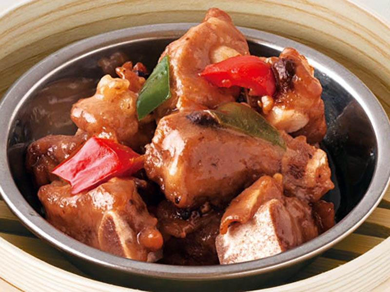 「お肉は骨周りが一番美味しい」と言われるように、骨付きの豚肉を芳ばしい豆豉で蒸しあげます。