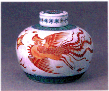 「豆彩」は中国陶磁器の一種で、明朝の成化時代(15世紀後半)に始まります。文様の輪郭を淡く細い青花で下絵付けし、釉を施して本焼きにした後、5、6種類の上絵の具を塗って焼き付けた色絵磁器で、中国では「闘彩」と書き表します。「闘」には、競い合うという意味があります。