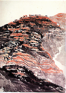 王府井は歩行者天国になった、東風市場がなくなった、等々の話は聞いていたのだが、変化の大きさは想像を超えていた。街の横道・校尉胡同にあった母校の校舎は移転し、今は一部の宿舎と美術館のみがそこに残されていた。記憶の中の四合院の灰色の壁と屋根瓦の景色があまりに鮮明なので、家が消えて拡張された道にバスが走っているのが現実とは思えなかった。美術館の個展会場で恩師の先生方にお会いした時、ようやく「帰ってきた」と実感でき、10数年の時間がつながった気がした。 会場には学生達も多く、興味深げに作品を見てくれた。彼らのものごしは柔らかで、留学当時に出会った学生達に比べ、ずいぶんおちついた印象を受けた。 振り返ると81年の「同学」達は、情報に飢えていて、貪欲だった。私が日本から持参した画集や雑誌を食い入るように見、日本の美術の現状を知りたがり私を質問責めにした。開いたばかりの中国の窓は、まだ全てに対して開かれてはいなかった。しかも、印象派も表現主義も抽象もポップも一挙に入りこんできたため、やや混乱していただろう。しかし、彼らは決して西洋のモダンアートを崇拝していたのではない。多くの学生達が一番興味を持っていたのは、むしろ、中国の土着の文化だった。学生は農村へ行き、農家に泊まり、農民をスケッチした。また民間美術の年画、刺繍、剪紙を学び、時には大学に農民を呼び剪紙の実演をしてもらったりもした。外来の芸術に興味津々でありながら、何より自分のルーツ、中国文化の根を探ろうとしていたのだと思う。そんな彼らが最も敬愛していた画家が、石魯であった。 82年のある日、中庭の掲示板に人だかりがあった。何だろう、と近づくと「石魯が亡くなった」と教えてくれた。学生も老師も沈痛な表情で、そのニュースがどれほどの打撃であったかがすぐに感じ取れた。 石魯は、西北黄土高原を描き続けた画家である。粗削りな画風と題材から、文革中に「野・粗・乱・黒」と批判され、「改革」を強要された。しかし彼は拒否し、ついには発狂してしまう。そのため死刑を免れ、入院と治療の中で絵を描き続けた。初めて間近で彼の作品を見た時、筆の激しさ、墨の重さに圧倒された。がさがさに重ねられた墨の質感は、乾いた大地そのものだった。そこには、中国の文化を育んだ黄河と黄色い大地があった。中国の根源は何か、という問いは、日本の風土に育った私にはあまりにも重い。しかし、石魯の絵は、その一つの答えをあざやかに私の前に示してくれている。 |