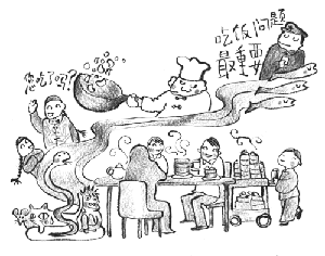 2000年以上も前にすでに孔子は「食不厭精、膾不厭細(飯は精白してあるほど、膾(なます)は細かいほどよい)」と言っています。当時の王侯貴族や文人にとって、「食」は腹を満たし命をつなぐためだけのものでなく、口と目を十分に楽しませるものでもありました。長い年月をかけ、中国人は「食」に対し比類のない経験を重ねてきました。孫中山(孫文)先生はこう言っています、「わが中国は文明の近代化という点では、どれもみな立ち後れてしまっているが、飲食の点では今なお文明国の及ぶところではない。中国の作り出した食物はもとより欧米を凌ぎ、中国料理の調理法のすばらしさは、欧米は肩を並べることができない。」中国は広大で、それぞれの土地の料理にはその土地の特色があります。山東料理、四川料理、広東料理、福建料理、江蘇料理、浙江料理、湖南料理、安徽料理、この八種の有名な料理の系統の中でも広東料理は、色・香り・味・形ともに美しく、鮮度・柔らかさ・口当たり・のどごしもすばらしく、最も好まれています。「食在広州(食は広州にあり)」といわれるゆえんです(広州は広東省の省都)。広州の料理店の数の多さは全国の大都市の中でも屈指といえます。そして、メニューが豊富で、調理法が優れ、食にかける時間が長いという特徴は、他の都市住民とは比較にならないほどです。たとえば普通、お茶は「飲む」ですが、広州では「お茶を食べる(吃茶)」と表現し、これは「食事する」ことを意味します。事実上「茶」はすでに脇役に退いているのに、です。そして、主役になったのは、甘いもの辛いもの、熱いもの冷たいもの、水気の多いもの少ないもの、肉料理であったり野菜料理であったり、中華あるいは西洋風の点心と料理なのです。さらに驚くことに、広州の人は一般的なニワトリやアヒル・魚・肉、活きた海鮮をおいしく調理するだけでなく、ヘビやネズミ・ネコ・サルなど、いわゆる空を飛ぶもの、地上をはうもの、水中を泳ぐもの、すべてがごちそうになって出てくるのです。 広東料理の店は、国内の大小あらゆる都市にあるだけではありません。世界中の中国料理店で広東料理と名がつく店がもっとも多いというのは、怪しむことではないのです。もし、世界の「食」に中国を挙げるなら、その中国の「食」ではまず広州が挙がるのです。 イラスト/浅山友貴 |