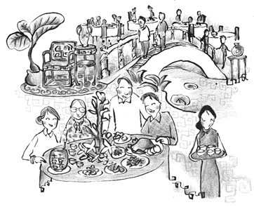 ここ杭州が有名な《観光天国》で毎年2千万の人が国内外から訪れることも、杭州料理に国内外の料理の優れたものを取り入れさせることになり、料理店は新しい素材、新しい調理法、新しい味の新杭州料理を絶えず生み出すことができるのです。かつて1956年に、西湖醋魚(草魚の甘酢かけ)、龍井蝦仁(小エビの龍井茶炒め)、宋嫂魚羹(魚のあつもの)、東坡肉(トンボーロー)など36の伝統的な杭州名菜が選定されましたが、90年代には新しい杭州名菜、蟹醸橙・鉄板鱸魚・稲草鴨(ワラ包みダック)・金牌扣肉(ブタばら肉の蒸し物)などが100以上も生み出されているのです。特集《美食天国、杭州》 料理店の繁栄はまた、店の営業意識の刷新にも役立ちました。以前なら料理店で何を注文するかで客の身分地位を見ました、「食べっぷりを見る」のです。成金が羽振りのよい金持ちぶろうと店に入った途端、「まずは口をすすぐふかひれスープを持ってきてくれ」と言う始末でした。いまや料理店で食事することはステイタスでなく特別なことでもありません。たしかに大変高価なツバメの巣・フカヒレ・アワビもありますが、主流は大衆向けの、 価格が実利的でむしろ斬新でおいしい料理です。また今は接待でなく家族友人と来る人が主です。新年や節句、誕生日、「友あり遠方より来たる」という時にみんなで料理店に集まることは、「おかず一皿」くらいのごく普通のことなのです。主婦の苦労を大いに省き、家族友人が集まって楽しく談笑してたいしたお金も掛からないとあっては、そうしないわけはないでしょう。文化の香り漂う雅な雰囲気、優美なしつらえの中で食事を楽しませるべく、料理店が内装にも力を注いでいることに触れましょう。ある店では一階ロビーの渓流に小橋が架かり、そこでおしどりがゆったり泳いでいます。ロビーの一隅には店主が収集した古い磁器や古美術品、クラシック家具などが飾られ、江南郷土文化の濃厚な息吹を感じさせます。このような食事環境は杭州では枚挙にいとまがありません。さらに驚くことはその料理店の規模です。営業スペースが1万平方mを超えるところがたくさんあり、最大1万8千平方m、これは中国内でもまれに見る大きさです。客が庶民的な値段で貴族のような気分を味わえる、このことも杭州の料理店業界が活気溢れますます盛んになることの重要な一因です。 杭州レストラン業の盛況は、いくつかの有名な料理店が上海・北京だけでなく広州や香港にまで支店を出していることで証明されるでしょう。上海では売上の伸びない店が次々杭州料理を取り入れ、杭州料理店が今や2千軒以上あるといいます。一昨年杭州で全中国初の「美食節(グルメフェア)」が開催され、第2回も昨年ここで開かれました。各地の名厨師が腕前を発揮し技を披露し、杭州の人々は口福ばかりか目福も大いに楽しむことができました。近い将来、「食は広州にあり」という伝統的な言い方は「食は杭州にあり」と改められるのではないでしょうか。 |