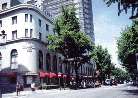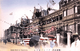 居留地・横浜を代表するグランドホテル、1870年創業。ホテル前の海は関東大震災後埋めたてられ山下公園が造成された。明治時代に欧米のホテルが並んだこの海岸通りに、時移り今またホテルが活況を呈し、新しい港の景色に。