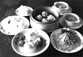 冬瓜のゼリー寄せ レンコンの梅酢あえ 当店自慢のチャーシュー コリアンダーと豆腐千切りサラダ ツルンと生湯葉のおさしみ 永遠のベストセラーフカヒレの姿煮 広東風焼き餃子 えびのウエハース巻き揚げ 香港の旬をお届け大根もちXO醤風味 菜香特製金宝涼麺