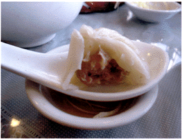 【玉珍瓏】は「創意中国餐」とうたう。内装は赤く派手、ユニフォームは黒、スマートな感じをねらっているのか?フォアグラのソテーは日本円で5百円しないがあまりうまくない。地元の人がオシャレに使うならよいが本場の中華をイメージして行くならバツである。一行の中には「創作料理は料理人の自己満足だ。」との意見も。少し耳が痛い…、一発勝負の料理はだれでもできる、同じ品質の物を持続するのが大変で難しいのだ。