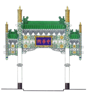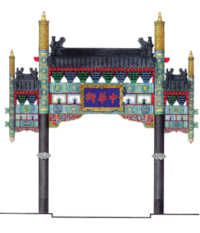 中華街大通りに1955年に建てられた日本で初の牌楼に、『春秋左氏伝』から引用した「親仁善隣」の言葉とともに、「中華街」の額が掲げられて以降、この街は「中華街」と呼ばれるようになった。現在の牌楼は89年竣工の2代目。