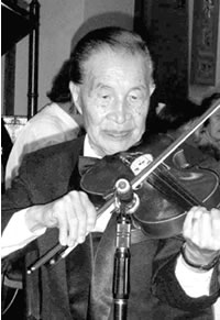 中華街の菜館で先日ある祝宴が開かれた。自らバイオリンを弾き、秦琴とセッションする主は梁兆華(りょうちょうか)さん。1915年生まれ88歳。そう、この日は梁さん米寿のお祝いの宴席。