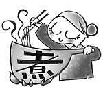 | 中国の北方では米より小麦「面mian」をよく食べる。お昼になると「面条(メン)」でも食べようか?ということになるがメンを「ゆでる」ことを「煮