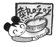 | 日本で、ある夏の日のこと、自販機の前で台湾の友だちが「冷たいお茶がある!」と声を上げた。私が不思議に思って、ほしいのかと聞くと「冷たいお茶を売るのか?」とあきれている。そういえば中国では、真夏に熱いお茶を椀に量り売りする屋台を見かけるし、台湾も暑い所なのに、お茶は冷やしておく習慣がほとんどないという。 日本では、おそば・冷やし中華(中国にはない)、お寿司など、温かくないご飯や麺もよく食べるが、中国の人は真夏でも、冷えたご飯や麺は食べないようだ。以前、おにぎりを食べる私に、来日間もない中国の人が大いに同情し、温かいものをあげる、と魔法瓶からスープをくれたことがあった。おにぎりはおいしいものなのだが、彼女にとってそれは「惨めな冷えたご飯」でしかなく、「こんなものは体に悪い。」とお説教されてしまった。 料理が少しでも冷めるのが耐え難いらしく「趁熱吃chenrechi(熱いうちに食べろ)。」という言葉は、中国語会話の本に必ず出てくる表現である。湯気が立ち上る料理は「熱呼呼rehuhu(熱々)」といって歓迎され、スープが冷めようものなら、夏の暑い時でも何度でも温め直すので、その神経の使いように驚かされる。しかしお茶やビールをはじめ、冷やすことには無頓着。唯一の例外はアイスクリームぐらいではないだろうか。 |