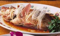 尾頭付きの魚 「年年有余(年ごとに余裕ができるように)」の願いを込める。中国語で「魚」「余」は同じ発音。 |