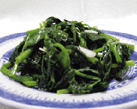 1年中栽培されるが、暗緑色の葉が夏は縦に伸び、冬には地面をはうように横に広がる。栄養豊富でカロチン・ビタミンCが多く、免疫機能を高め血管強化、老化予防に効果。 ■それだけを炒めておいしい。アクが少ないので他の食材に合わせてもOK。加熱しても緑色が鮮やか。 |