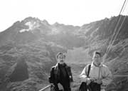 | ボリバール山を背景に、高島さん(左)と筆者(右) |