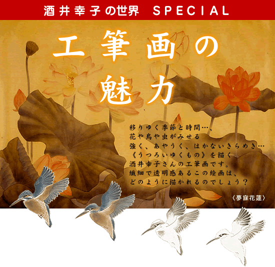 68年横浜生まれ。美術専門学校で中国水墨画を専攻し、卒業後同校勤務。のち中国師範大学に語学留学、北京中央美術学院で花鳥画を学ぶ。現在は作家活動に励み、個展・グループ展を開く傍ら、水墨画・工筆画の教室を催し指導する。 アサヒ飲料[中国緑茶 凛]パッケージデザイン(02年)や、永昌源[杏露酒]キャンペーンポスター(04年)に、酒井さんの花鳥画が採用された。 『豆彩』に、55号(06年2月)から「酒井幸子の世界―うつろいゆくもの」を連載中。『豆彩』55号の「中華街でニイハオ」(http://www.perinet.co.jp/tousai/0602/nihao.html)に、酒井幸子さんのインタビューを掲載しています。 |