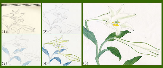 工筆画でユリを描く |