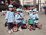 外遊び (AM 10:00) 山下町公園で遊びます。 三輪車部隊が出発! 外で遊んで丈夫な身体を作りましょう! |