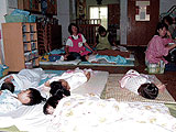お昼寝 (PM 1:30) 月齢・年齢に合わせてお昼寝は長め、短め。「お休みなさ〜い…。」お目々を開けているのはだーれ? |