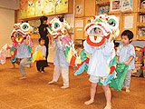おやつ (PM 4:00) 「きょうのおやつはなーに?」楽しいひととき。 遊び (PM 4:30) 粘土遊び・お絵かき・おままごと・折り紙…、きょうは獅子舞の練習。 |