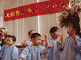 | 横浜中華街の山下町公園に隣接する【保育園小紅】は、今年、設立40周年を迎えました。日本に昔から居住する華僑や日本籍の華人の子どもだけでなく、この地域の子どもたちの保育を担っています。 「子ども、父母、職員がともに育ちあうこと、地域に根ざした保育を行うこと、中国伝統文化を伝え継承することを大切にしています。」(『保育園小紅簡介』) 父母が安心して働けるよう、子どもたちが心身ともに健やかに育つよう、中国文化を伝えるべく、符美和園長ほか11名の職員が園児を見守ります。符園長は「横浜中華街は【小紅】の子どもたちが中国文化に触れる大切な場所。この保育所は父母と華僑社会と街の人びとに支えられています。」 横浜市の「横浜保育室」認定で、3歳児の大熊猫(パンダ)クラスから0歳児の小鶏(ヒヨコ)クラスまで、25名の園児が在籍しています。 「【小紅】は家庭のように温かく、ワンフロアで目が行き届くので、安心です。」「私も【小紅】を出たので、安心して見てもらっています。」とお母さん、お父さん。 1997年に横浜市から基準を満たす「横浜保育室」に認定され、設置者を横浜華僑小紅の会、園名を【保育園小紅】と改めました。【小紅】を巣立った卒園生が親になり、その子を【小紅】に入れて孫世代を育成するようになり、今年、設立40周年を迎えました。 |