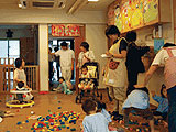 | 降園 (PM 5:00) 「再見!」 「さようなら!」 「ママ、獅子舞したよ。」 延長保育 (PM 7:00) |