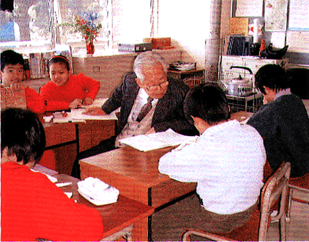 授業の終わりのチャイムが鳴る、日本語教室のドアが開き、「ただいま」元気な声。「おかえり」と迎える林松山(りんしょうざん)先生。壁にはこの教室に通う子供の出身地が示された世界地図。ここは横浜市立元街小学校。明治の時代から外国人の住居・教会・学校が立ち並ぶ国際色豊かな地域、横浜山手地区にある。外国籍児童は全校児童の2割近い78名、うち26名が「日本語教室・国際教室」に通う(2000年2月現在)。横浜中華街に近いことから、中国籍の児童が多い。この教室は日本語の習熟・教科学習の補助・生活指導をする2人の専任教諭と、外国語に堪能な日本語指導協力者(林先生とほか2名)が連携して運営している。 林さん、1926年三重県生まれ、73歳。長く華僑団体の仕事をしてきた。元街小では編入してくる外国籍の児童が急に増えたことから、81年、林さんを非常勤講師に迎えてここに日本語教室が開設された。それ以来、初めて異文化に触れ言葉や習慣の違いに戸惑う子供たちを暖かく見守って19年がたつ。7年間は1人で奮闘、一時は市立港中学の日本語教室を掛け持ったこともあった。現在は週2日、ここ元街小に勤務する。 児童は在籍の学級が国語や算数を行っている時間にこの教室にかよう。いすに座る林先生を囲んで机がコの字型に並べられ、授業が始まった。広い中国には標準語である北京語のほかに方言が多く、方言が違うとまったく別の言葉のようで通じない。 林さんは北京語・上海語・福建語・広東語・台湾語などなど、子供の出身地方の言葉を使って子供の気持ちをときほぐし、学習の理解を助け、日本語を教えている。「子供は自分の意志で日本に来たわけではないので、その気持ちが日本語の習熟にも影響してきます。日本での生活に意欲が持てるように、ここへ来るのが楽しいと思わせることが大切ですね。」「一人の子供と地方の言葉を使って話していると、それが分からない別の子が焼きもち焼くんですよ。」と笑う。 この教室で日本語の基礎が理解できると、クラスに戻って授業を受ける。一方、日本に慣れると国の言葉を忘れがち。忘れかけた故郷の言葉もこの教室に顔を出して林先生と話をすると思い出す。「自分の国の言葉も大事にしてほしい。」と林先生は願う。