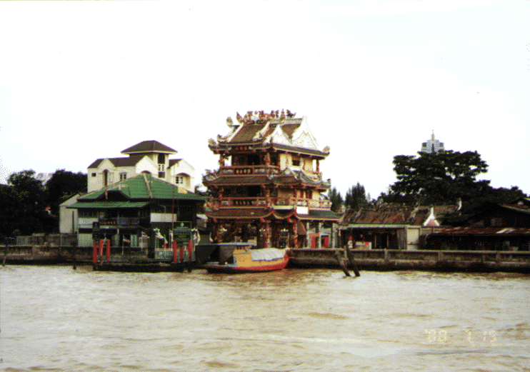 店を出ると、通り沿いは食料品の店が建ち並び、食材の量と種類の豊富さに驚いた。食料品の雑貨店が多くて、よく見ると、大体2〜3階建てで、1階が店として使われ、2〜3階が住まいとなっている。店の中には、必ずと言っていいほど、床に小さな赤い祠が置いてあり、また、壁に関羽の像が飾られている、朝にはお線香と簡単な供え物が上げられるのであろう。中国の仏教の思想を実によく継承している。もっと驚いたことは、メインストリートに出たところ、「金店」がずらっと立ち並び、店の中をのぞくと、まぶしくて、私の目の中で金が光った。貯金感覚で金を買う中国人が多い。買い物客が多くて、落ち着いて買い物をする雰囲気ではなく、まるでバーゲンをやっているように、お客さんが殺到していた。タイは金の産地?安いの?買う予定がない私まで、買わなくちゃと思うほどであった。金は縁起が良いので、何かいいことがあるようにとブレスレッドを買ってしまった。ほとんどの店は中国語を話せる華僑の人たちがいて、楽に買い物ができる。真夏の強い日ざしの中での中華街の散策は疲れ果てたが、私の大好物「瓜子(ひまわりの種)」を忘れずに買い、活気があるタイの中華街を後にした。現地に住みついた中国人たちにとっては、中華街は彼らが好む食文化を支えるだけではなく、頑張る力を引き出す原動力でもあるような気がした。 「ゴザ一枚、枕一つ」で故郷を離れた中国人たちは、富を求めて船に乗った。タイで自分の生活基盤を立派に築き、たくましく生きている。その成功は世界中の中国人に大いなる勇気を与えたに違いない。そして、精神的拠所としてチャオプラャー川沿いに多数の寺廟が建てられている。航海の平安を祈る媽祖廟、商売繁昌を祈る関帝廟などでは多くの中国人が集まって、篤く信仰している。寺廟の建設及び修復に力を注いでいる。それは中国人としてのアィデンティティが強く求められている証である。異国で自分の祖国の文化に触れ合えて、中華文化・社会が異国の文化・社会に浸透し、融合していることを誇りに感じた。中国の子孫にとって、こんな幸せなことはないでしょう。 今回の旅は、ぴかぴか光る色鮮やかな寺院、バンコクを流れるチャオプラャー川沿いに生活する水上集落、海外の観光客で賑わうバンコクの街角といったタイの魅力を満喫しただけではなく、中国人としての誇りを再び実感させてくれた旅でもあった。 |