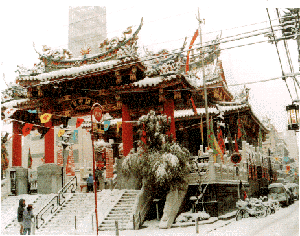 ![]() 春節祭の舞台/撮影【黎啓榕】 春節、それは中国のお正月。旧暦でしますから今年は2月7日。横浜中華街もお正月の飾り付けで華やかな雰囲気に包まれます。獅子も新春を祝って舞います。 今年の旧正月は2月7日。毎年この行事にあわせ横浜中華街では各種イベントを計画し、「春節祭」として多くの人々に喜ばれている。中国大陸、東南アジア、そして華僑や華人が多く住む国、地域ではこの旧正月が真の年越しで、太陽暦の正月は単なる休日といった感じにすぎない。 中国大陸では旧暦の大晦日午前零時を期して、街中のあちこちで爆竹、打ち上げ花火を鳴らし旧正月を祝う。しかし都市部では花火による火事が頻繁に発生したり、花火に費やすお金がものすごいので、浪費として禁止したり、規制したりする都市も出てきているそうだ。また、鉄道やバスのターミナルは帰省する人々でごった返し、まさしく民族の大移動。そのため地方の工場では旧正月の前後1か月近くも操業が停止するところもあるそうだ。 今年も横浜中華街では関帝廟で2月6日夜カウントダウンをし、7日午前零時に爆竹を合図に中国獅子舞の奉納がある。本紙表紙の写真は正月のお飾りと、後方に見えるのは横浜港のシンボル、マリンタワー。桃の木につり下げられている赤い袋は中国のお年玉袋。このころ、東南アジア、香港では小さなミカンがたくさんなった木に赤いお年玉袋をつり下げたいわゆる《大吉大利》がそこらじゅうで見られる。【黎啓榕】 |