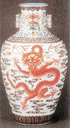 「豆彩」は中国陶磁器の一種で、明朝の成化時代(15世紀後半)に始まります。文様の輪郭を淡く細い青花で下絵付けし、釉を施して本焼きにした後、5、6種類の上絵の具を塗って焼き付けた色絵磁器で、中国では「闘彩」と書き表します。「闘」には、競い合うという意味があります。