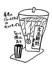 香港では生水が飲めません。味も多分生臭くてマズそうなんですが、その割にその水を使って作られるであろう料理がオイシイのはどうしてなんでしょうか? ★さあ、始めようか! ☆うーん ★何だよお前、また古い物食って腹こわしたのか? ☆うーん、なんか力が湧かないんだよう。 ★へぇ、でも心配すんな!イイものがあるぞ。これを飲め! ☆あっ、スタミナドリンク?いただきまーす。ゴクゴク……ブーッ!カーッ、ペッ!!何じゃこりゃーっ!! ★お前、吹き出すなよ。せっかくの善意を。 ☆てめぇ、胃薬を水で溶いたんだろう、これ!何がイイものだ!! ★これはお前、涼茶(リョンチャ)だよ。でも確かにそういう味だな。どうだ、元気出たか? ☆なんだよ涼茶かあ。相変わらずマズいなあ。 ★でも体にいいぞ。ほてりをさます、ムシ暑い香港ならではの健康ドリンクだ。 ☆香港中あちこちあるよね、涼茶スタンド。 ★立ち飲みでな。キュッと一杯って感じ。 ☆でもやっぱ生ジュースなんかの方がいいなあ。 ★香港は果物が安くて種類豊富でいいよな。メロン、スイカ、パパイヤ、マンゴ、キウイ、オレンジ、それと…… ☆にんじん、砂糖きび、クレソン、ウヒヒ。 ★ウェッ、でもそれ本当に売ってんだよな。 ☆軽食屋に入るとさ、砂糖水に生卵落としたやつ、レモンコ ーヒー、しょうが入りホットコーラ、あと…… ★もうやめろ、気持ちわりいよ。 ☆あと牛肉茶。 ★……何それ?牛肉入りのお茶? ☆これはね、牛肉のエキスをお湯で溶いたやつ。コンソメみ たいなもんだよ。 ★もともとコーヒーと紅茶混ぜてメニューに載せるくらいだか らな。なんでもありだな。うう、胸がムカムカするぅ。 ☆ん、調子悪いの?じゃあこれ飲んでみ。 ★おっ、サンキュ。ゴクゴク……ブー!てめぇ、仕返しか!?何 飲ませた!! ☆失礼な。世界各国で効能が認められていますってパッケージにも書いてあるぞ。滋養強壮、病中病後、産前産後、食欲増進、お年寄りにも赤ちゃんにも、毎日飲めば健康まちがいなしの万能ドリンク!!香港の人からもらったの。 ★うう、なんか生臭い…色もやたら濃いし…なんだよこれ? ☆鶏のエキス100%ドリンク。 ★…… |