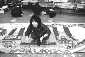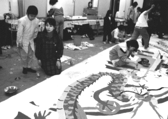 | 王節子さん(インタビューアー曽峰英) 石川町駅北口から中華街へ向かう…。白と緑色に彩られた中華街西門をくぐると、両側に横浜市立港中学校と同港商業高校があり、さらに先へ進むと右角に去年建設された山下町公共駐車場がある。一見駐車場とは思えぬほど夜には美しくライトアップされ、その横には全長12メートル、ガラス張りの展示スペース「九龍陳列窓」がある。この展示スペースの目的は「中国文化や中華街を紹介することで、街づくりに役立てる」というもので、中華街に関係する女性九人で結成された「九龍委員会」が企画し、この5月〜7月にはこの地域に住む5つの学校の子供たちが共同で制作した作品「地球の幸せ」を展示した。子供本来の持つまっすぐな感性が大変な評判であった。 非常にパワフルな人物、王節子(オウセツコ)。横浜山手中華学校の美術教師であり、この九龍委員会のメンバーの一人である。また、自分のアトリエで地域の子供たちに絵を教えるなど、活躍の場は広い。 福岡県の久留米市に生まれ、父は福建省出身の二世、母は一世である。本人は小中高、大学と日本の学校へ通う。好きな画家はピカソ。美術を学ぶため大分大学の教育学部美術科へ進み、自分が表現したい絵を描くと、どうしても百号(畳二畳分)と大きくなるため、馬小屋を改築した所をアトリエ兼住居とする。 美術を通した児童教育の中で「子供の心のレンズを通した作品づくり」が私のモットーなんです。とにかく子供たちには目に映るもの、手に触るもの、すべてを肥やしにして欲しいから「お金をかけずにアイデアで」という自分のポリシーはありますね。鳥がテーマの時は手塚治虫氏の「火の鳥」を授業に盛り込み、孫悟空がテーマであれば棒を持たせて孫悟空になりきらせる。こうして遊びながら勉強させるとすばらしい絵が生まれるんです。自分の中で解釈して、ポンと出しなさいということなんです。それができていれば技術が稚拙でも表現が稚拙でもそれでOKなんです。 今、中教審の中で授業を削減するために、美術科と音楽科を結合させて表現科にしようという動きがあるんです。美しい、悔しい、楽しいとかいう感情面を教えないで教育していくことなんて考えられません。感性を養う面が欠落するといびつな人間が生まれ、アンバランスな人間が生まれるんではないかと恐怖さえ感じます。神戸の淳君殺害事件も容疑者に対し「残酷だ。残酷だ。」と言っても、彼には残酷という感性が育っていないんです。 今、自分はルワンダの内戦で心が傷ついた子を支援したいなと思っているんです。子供たちは生まれもって絵を描く能力があって、内戦があるために絵を描けない、それがなぜかと考えると心も痛みます。世界中の子供達と言葉は通じなくても、向こうへ出向いていって絵を通してつながっていく…、自分がそういうことのできる人間になりたいと思っていますし、どの地域にいても、どの学校にいても、どんな背景で育っても、子供達の造形表現は世界共通で、造形を通して世界がつながっていけたらと思います。 九龍壁については、「街づくり」は「人づくり」だと感じています。あれだけきっかけがあれば、これだけ盛り上がるんだと分かったし、さらに自分のライフワークと作品を重ねていけたということに感謝しています。また、この九龍壁の作品づくりに協力してくれた5つの学校の一つ横浜中華学院に、事前に作品制作についてお願いしたところ、「全面的に協力しましょう」と校長先生に言われて胸が熱くなりましたよ。しがらみや難しいことがたくさんある中、少しずつでもこういうことが積み重ねて行けたら、もっともっとすばらしいこともできると思います。 |