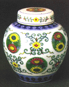 豆彩菊花蓋罐(乾隆窯)