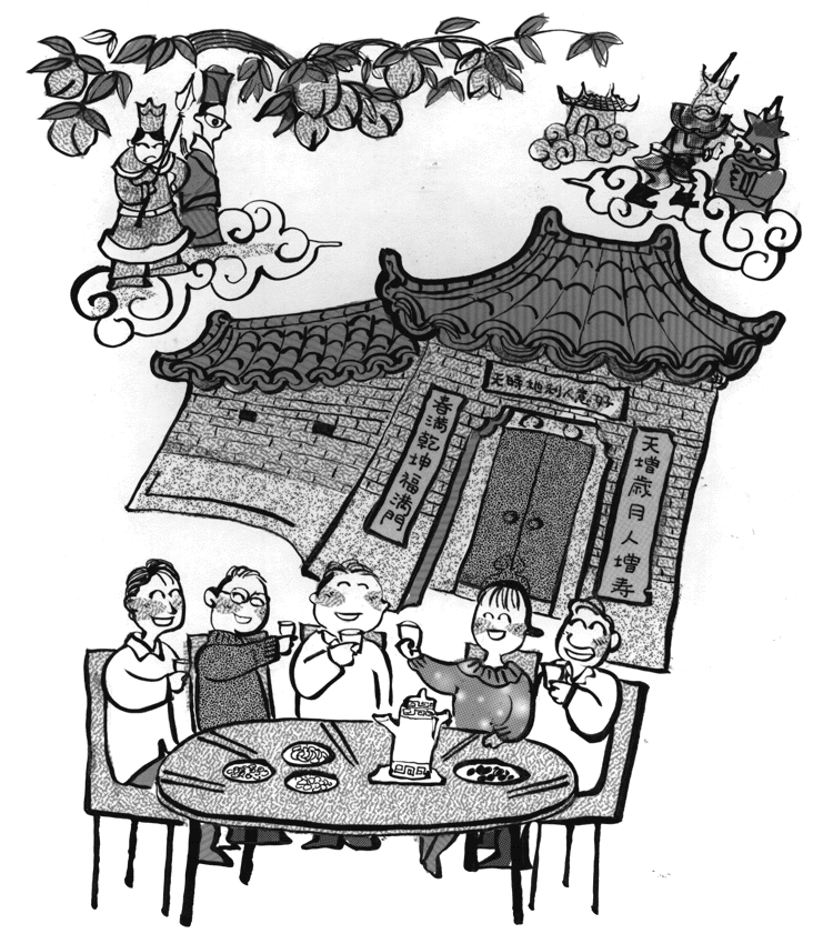 門松と春聯 【陸汝富(北京放送)】 イラスト/浅山友貴 |