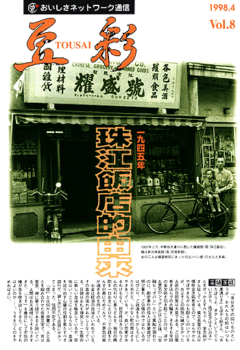 (表紙写真)1957年ころ、中華街大通りに面した耀盛號(現、珠江飯店)。隣は新光映画館(現、同発新館)。右の2人は耀盛號前にあった均元(パン屋)の主人と末娘。