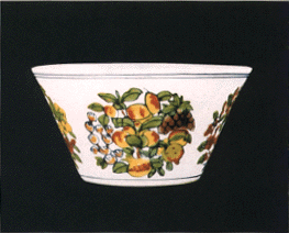 「豆彩」は中国陶磁器の一種で、明朝の成化時代(15世紀後半)に始まります。文様の輪郭を淡く細い青花で下絵付けし、釉を施して本焼きにした後、5、6種類の上絵の具を塗って焼き付けた色絵磁器で、中国では「闘彩」と書き表します。「闘」には、競い合うという意味があります。