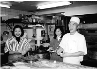 中華街に駄菓子屋はあったものの、子供のころから甘い物が得意じゃなかった私。好んで食べていたのはごまだんご(煎堆、チントイ)だった。ごまで覆われた表面のこうばしさは、中華を腹いっぱい食べてもこれは別と、口に放り込む人も多いはず。そして「ひと口で心温まる家郷の味」とだれもがうなるごまだんごがここ「翠香園」。 食い意地張った私は、お小遣いを握りしめて店の前を往復し、揚げたての湯気で曇るショーケースを待ちわびたものだった。時として学校帰りに「お帰り、チントイ食べる?」と声をかけてくれる。最近分かったことだが、父の時も そうだったというから、翠香園親子二代、変わらぬ親心である。 翠香園社長盧栄●五八歳、愛称エイヨちゃん、東京巣鴨で生まれる。父盧譜章さんは1907年、七人の仲間達(海員閣や謝甜記の先代)と香港経由で来日した。当時15歳である。 1925年盧譜章さんは、銀座歌舞伎座内に仲間同士で金を出し合い中華料理店「翠香亭」をオープン。翌年、横浜中華街ではじめての中華菓子製造販売を手掛ける「翠香園」を創業。調理器具もない当初、燃料は全て薪、お菓子の型抜きは空き缶を利用し、オーブン代わりに大きな鉄板皿に炭を載せ、天井からつるし、上げ下げして菓子を焼いた。1964年、中華菓子では初の神奈川県指定銘菓になり、全国菓子大博覧会大臣賞などさまざまな栄誉に輝いた。「親父、指定銘菓の看板もらった時うれしくて、爆竹あげてたよ。」 引き臼でもち米を引いて作ったごまだんご、おまんじゅうはイーストを使わず日々の種で発酵させる。もちろん全て手作業、ゆえにおいしい。店内にはその場で食べられるよう腰掛けを置き、お茶を出すなどの細かい気配りと、真面目な味がさらに客を引き寄せたのだった。 小学4年生のころから盧さんは店の出前をしながら、そば打ちを父から教わる。高校時代には、教科書をひもでくくり、肩から下げ、高下駄を履いた蛮カラスタイルで他校とケンカの日々を過ごす。石原裕次郎が日活映画で大活躍していた時代である。高校3年生になるとアイスホッケーに夢中になった。「あのスピード感と格闘技的なところが好きなんですよ。」その後、横浜市立大学商学部経済学科に進学、大学4年間はアイスホッケーにのめりこんだ。在籍中に全国ベスト8入りを果たし、神奈川の賞は総なめ、新聞でもてはやされたそんな時、70歳過ぎた父から「学校とるか?仕事取るか?月謝出しているのはおれだよ」といわれ、卒業を目前に大学中退して家業を手伝うことになった。実はその前に大珍楼の看板娘梁笑英さんと学生結婚している。奥さんは中華学校の同級生、付き合い始めたら、父親がすぐに相手のところに行って話をつけてしまった。盧さんは大学中退であるが、数年前から卒業生名簿に載るようになった、大学の名を全国に広めた功労者ゆえである。 大通りがすました表顔なら、八百屋、魚屋などが軒を連ねた市場通りは、庶民の素顔が見えるすっぴん通りといえるだろう。この一角に「翠香園」はのれんを掲げ、73年間このかた製法を変えない。 イーストを使わず、家族も一緒になって、奥さんが腱鞘炎になるぐらい、手作業でまんじゅうを作り続ける。20年前に開業した広東料理「翠香園」の食材は社長自ら市場へ行って新鮮な海鮮物を仕入れる。中華街でも指折りの料理店となり、食通たちをとりこにした。 八年前に店を改築した時、目いっぱい建てれば五階建てのところを四階建てにしたのは、「自分の目が届く範囲だから」という。だが、目の半分は奥さんに負担してもらっているようだ。どんなに近代的になっても、常に現場に目をやりながら、心をこめて中華菓子と中華料理を作る。これが時代を生きてきた老舗の存在であり、今日の中華街を支えてきたひとつの源だと改めて感じる。 |