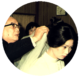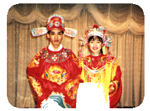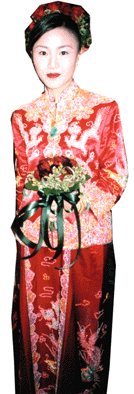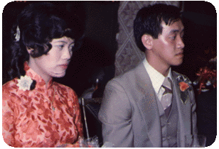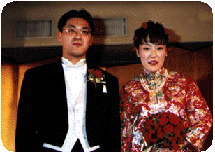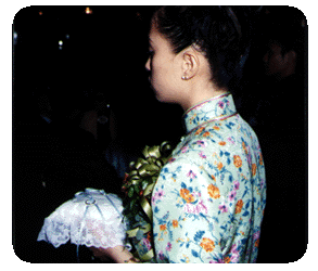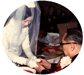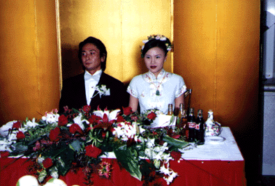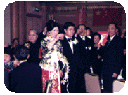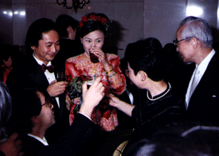 自宅で新婦の父がベールを付けてから娘を見送るという風習がありました。新郎はブライダルカーで新婦を迎えに行き、中華街を一周して周囲の人達の祝福をたくさん受けて会場入りしたのです。 |