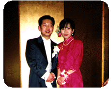 | 日本の鏡開きにチャイナドレス。国際結婚の象徴です。 | 真っ白なチャイナドレスは小麦色の肌を引き立てます。 | ショッキングピンクのチャイナドレスは目にもまぶしくパーッと鮮やか。 |