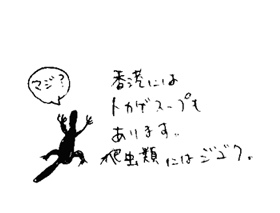 | ☆は〜寒い。早くあったかくなんねぇかなもう。 ★そうだなぁ、スッポン丸鍋、ふぐのフルコース、松阪牛のしゃぶしゃぶ…デヘヘ。 ☆だからそれはもういいの。記念つったって、何もくれないんだから、どうせ。 ★プー(ふくれる)もう帰る。じゃあねー。 ☆まぁ待てよ。コンビニおでんでも食ってあったまろうぜ。おれちくわぶ。 ★わびしい…。こんな時あの店があれば…。 ☆何の店?ホットな店っていうと…エロ本屋?行こうよぉ。早く早く!! ★さすが☆君…って違うっての。オレはヘビスープが食いたいの。 ☆香港で味をしめたな。菊花五蛇羮(5種のヘビ入りスープ菊の花添え)でしょ。ハイ、説明! ★10月ころから冬が終わるころまであって、とろみのある醤油味スープにたっぷりの細切りヘビ肉ときくらげ、しいたけ、陳皮(みかんの皮)が入ってて、菊の花びらとレモンの葉の千切り、揚げたワンタンの皮みたいなのを混ぜて食べる。寒い時期にはコレしかないって感じ。あぁマジ食いて〜。 ☆中でも冬眠に入る前が一番太っててウマイ。ヘビって聞いただけでダメって人も多いけど、ちょっと固めの鶏ささみって感じで、クセも何もないし。 ★ただのゲテ物食いじゃなくて、ちゃんと薬効があるからみんな食べるんだよ。だって食べた後ハンパじゃなくあったまるし。 ☆うん、体のよけいな水分を除いて寒気を防ぐからあったまるし、神経痛や腰痛に効果があるって。 ★それにヘビは肉だけじゃないよ。キモだよ、キモ。クククッ。 ☆「ヘビの効能はキモで決まる」ってね。あれすご い色だよな、青緑っていうか…。酒に入れてそのまま飲むんだよね。お前飲んだ? ★飲んだも何も、オレフルコース食べちゃったもん。スープに肉炒め、皮の唐揚げ、キモ、あと…血。 ☆うっ、すっげーキキそ。食った後どーなった? ★ヘビだけにヘビー!かな?きれいにオチたろ。 ☆食い過ぎて熱が頭にまわっちまったか。 |