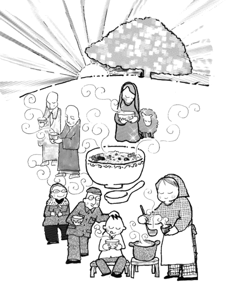 いよいよ12月がやってきた。この12月の別名を臘月(ろうげつ)といい、12月8日を臘八という。この日は一年の農事が無事に終わったことを、農作物や狩猟で得た禽獣を捧げて宇宙万物に感謝し、祖先をまつる祭り、臘八節である。 この日に臘八粥というお粥を食べる風習がある。これは南北朝時代(4201589)に仏教が盛んになったことと関係があるようだ。中国では釈迦の成道の日が12月8日とする説があり、そんなことから臘八節は仏教行事とも結びつき、唐、宋代以降はさまざまな果物を入れた臘八粥を作って、灌仏会を行い、檀家に配ったり、貧困者を救ったものだが、臘八粥についてはこんな伝説がある。釈迦は苦行を続けて生命の真理を求めるが、12月8日飢餓と疲労で路上に気を失って倒れてしまう。そこを通りかかった羊飼いの娘が羊乳の粥を食べさせて釈迦を救う、その日に釈迦は菩提樹の木の下で悟りを開くのである。釈迦が食べた命救いの羊乳粥が臘八粥の起こりだという。 |