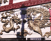 ![]() 中華街の東の牌楼は「青龍門」。建てかえられる予定。 |