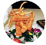 ![]() 料理に添えられる龍の彫り物。材料はにんじん。(珠江飯店) |